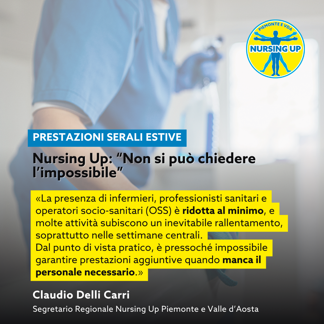 Claudio Delli Carri, Segretario Regionale del Nursing Up Piemonte: «Le dichiarazioni del commissario Schael riportano al centro del dibattito pubblico una questione cruciale: l’accesso equo e universale alle cure. Tuttavia, affrontare il problema delle liste di attesa esclusivamente attraverso lo stop alla libera professione intramoenia rischia di essere una risposta parziale e temporanea a una crisi ben più profonda. In Piemonte, la vera emergenza è la carenza di personale sanitario, in particolare di infermieri e professionisti sanitari, che rappresentano l’ossatura operativa del sistema. Senza un piano strutturale per colmare questa mancanza, qualsiasi misura rischia di essere inefficace. Le liste di attesa non si riducono solo con provvedimenti di questo tipo, ma attraverso un potenziamento reale delle risorse umane e una migliore organizzazione del lavoro. Chiediamo che il commissario Schael, al suo arrivo a Torino, metta al centro delle sue priorità non solo il miglioramento dei tempi di attesa, ma anche l’investimento su chi ogni giorno si fa carico del funzionamento del sistema sanitario. Le aperture serali e nel fine settimana, come proposto, sono utili ma necessitano di personale adeguato, che oggi manca. Non possiamo continuare a sopperire a queste carenze gravando ulteriormente sugli infermieri già esausti per turni massacranti e condizioni di lavoro insostenibili. Il Nursing Up è pronto a confrontarsi con il nuovo commissario per garantire che le misure intraprese non siano solo emergenziali, ma parte di una visione a lungo termine che restituisca dignità al lavoro degli infermieri e sicurezza ai cittadini, che hanno il diritto di accedere a cure tempestive e di qualità».